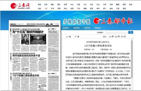 为了提高市民在雾霾天中的防护意识,西安新城中大耳鼻喉医院特别提供1万个防霾专用口罩向广大市民和读者免费发放。从即日起,只要你通过三秦都市报全媒体(一报:三秦都市报;一网:三秦网;双微:三秦都市报微博微信、三秦网微博微信,粉丝100万+;秦人矩阵;网站集群;三秦快播APP)参与西安两会话题讨论发表意见,或者扫描三秦快播APP二维码并关注下载,就可以前往以下地址领取,先到先得,领完为止。1、三秦都市报客户服务部,地址:西安市环城南路东段1号(太乙路十字西南角),电话:029-82240786.三秦领取时间:2月1日至3日工作时间内。