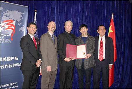 MORE Health全球总部首席市场官Jeff Leader与员根远主任于 驻华大使馆签约“爱一传递”